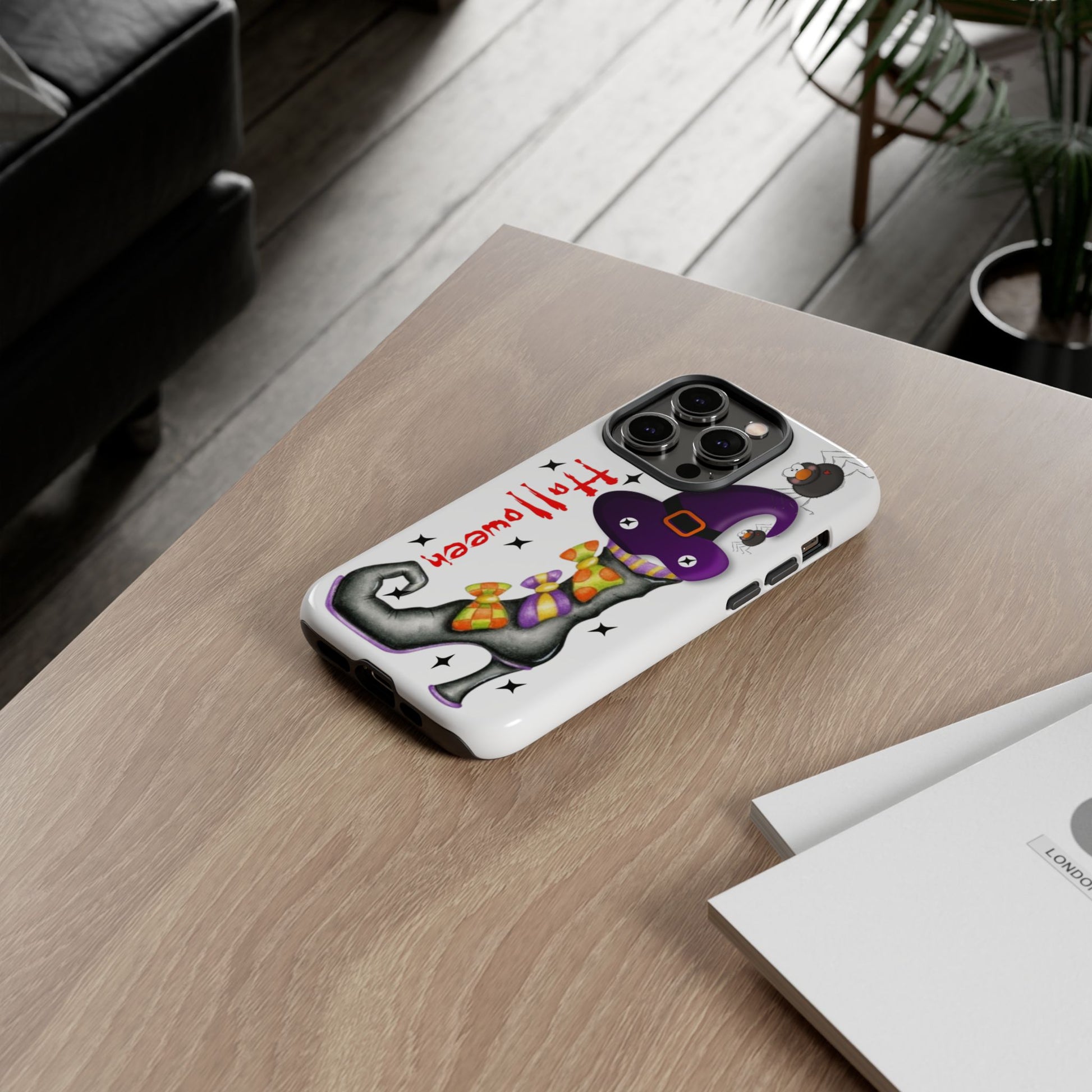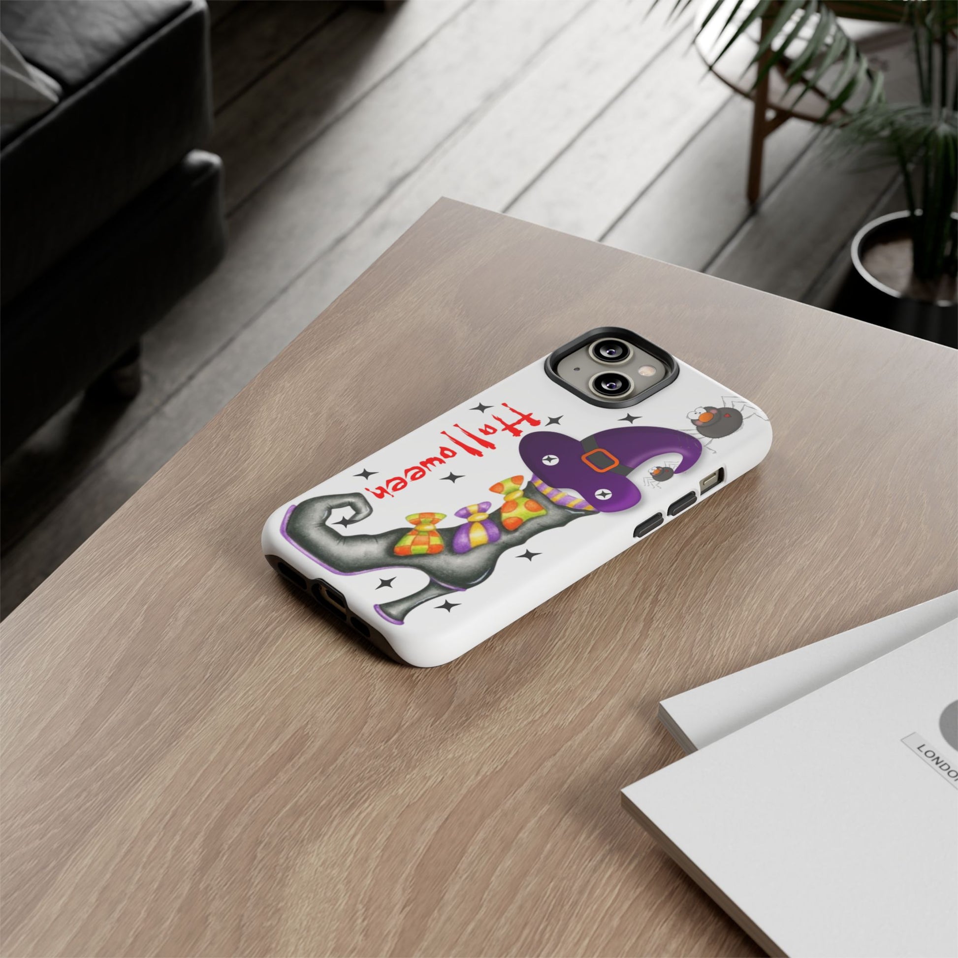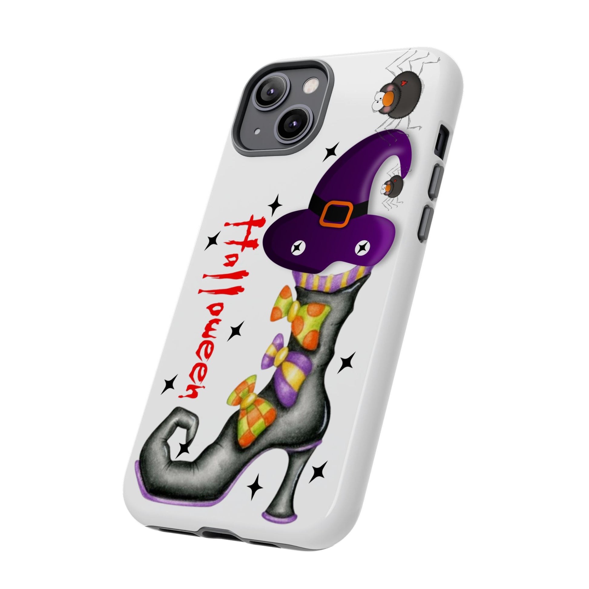 Introducing a vibrant and playful phone case that brings a touch of whimsy to your everyday life! This durable phone case showcases a charming Halloween design, perfect for those who love to celebrate the spooky season. With its unique 3D wrap, the artwork features a whimsical witch's boot adorned with colorful decorations and a friendly spider, capturing the festive spirit of Halloween. It’s designed for adults who appreciate a blend of fun and functionality. This phone case is ideal for Halloween enthusiasts, making it a great accessory for costume parties or seasonal gatherings. Gift it to a friend or treat yourself as the perfect way to show off your Halloween vibes!